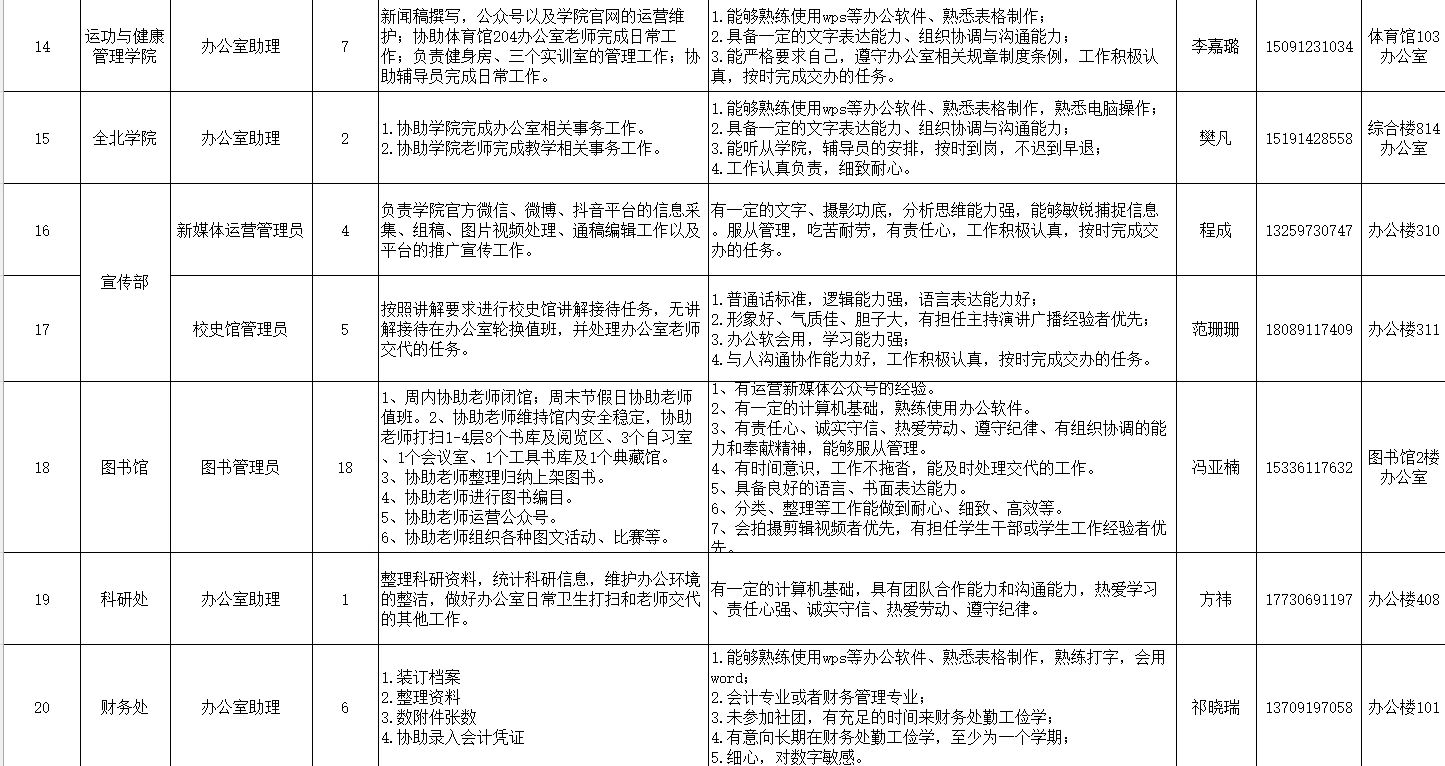 2024秋季勤工助学岗位招聘