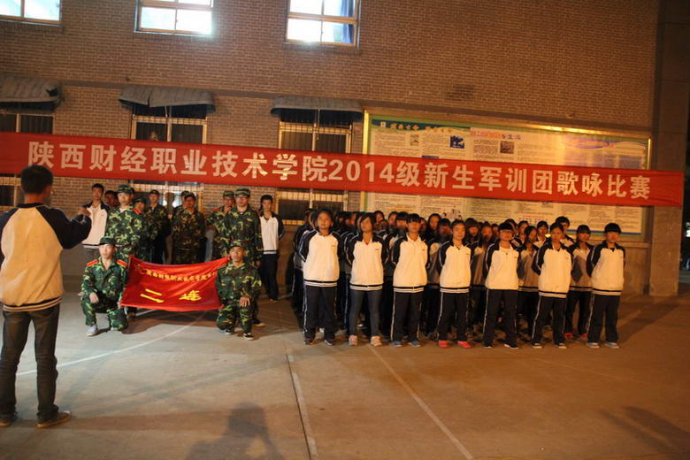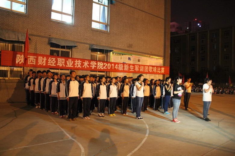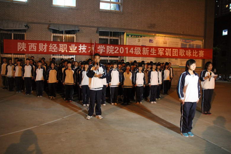 2014年9月23日晚,陕西财经职业技术学院2014级新生军训团在南校区举办大型歌咏比赛。学生工作处副处长、军训团副政委郭宝东,军训团团长杨庚辰,以及所有教官、辅导员、工作人员出席了盛会。