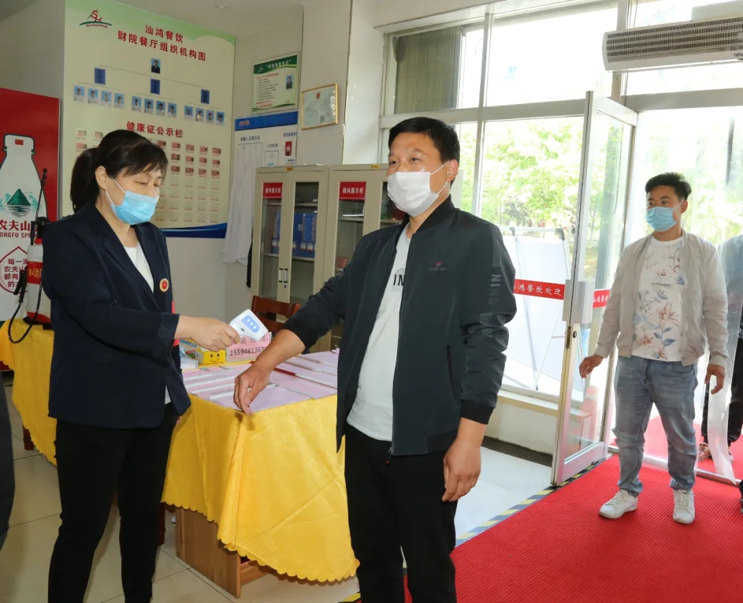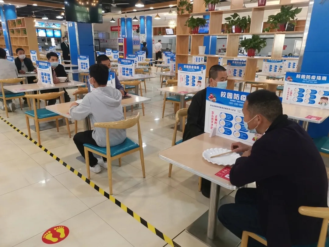 学生进餐厅前要洗手,依此排队经红外线设备检测体温正常后,方可进入餐厅,按地面引导路线取餐,单人单桌同向就餐。在餐厅如有发热情况,第一时间报告餐厅经理;餐厅经理第一时间报告校医张飞侠(电话:13892087686),并组织发热学生原地等待;校医第一时间到现场并复检发热学生的情况;若复检正常,应急处置结束;若复检异常,校医及时通知餐厅经理、辅导员做好密切接触者摸排,报告指挥部并紧急送医;总务处做好餐厅现场消杀。