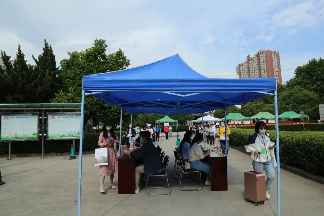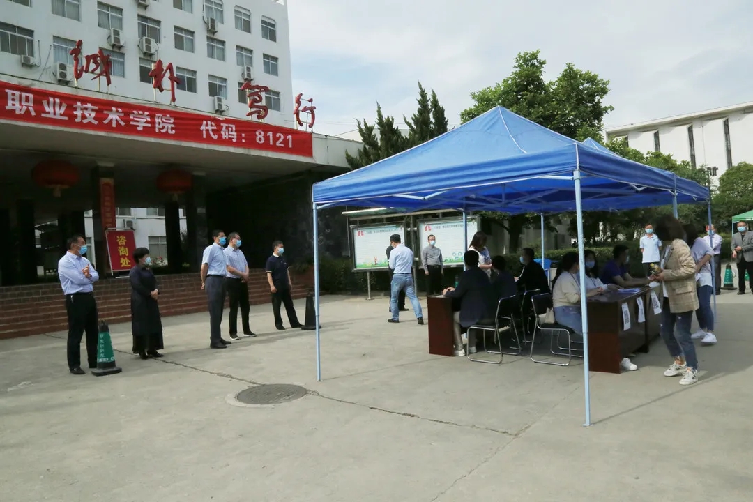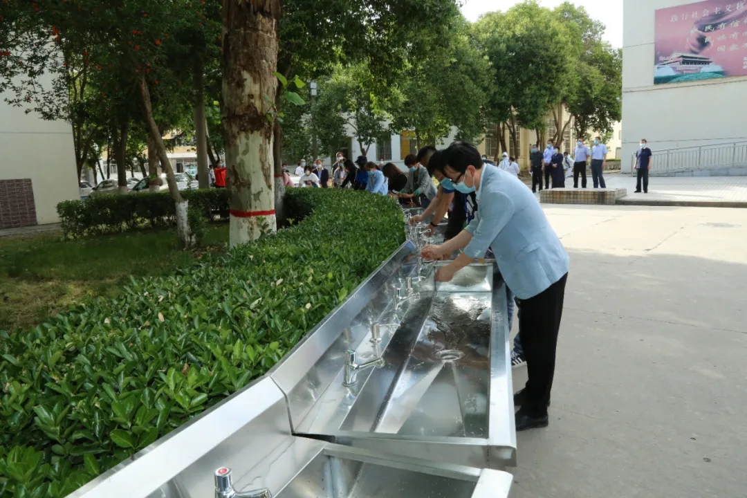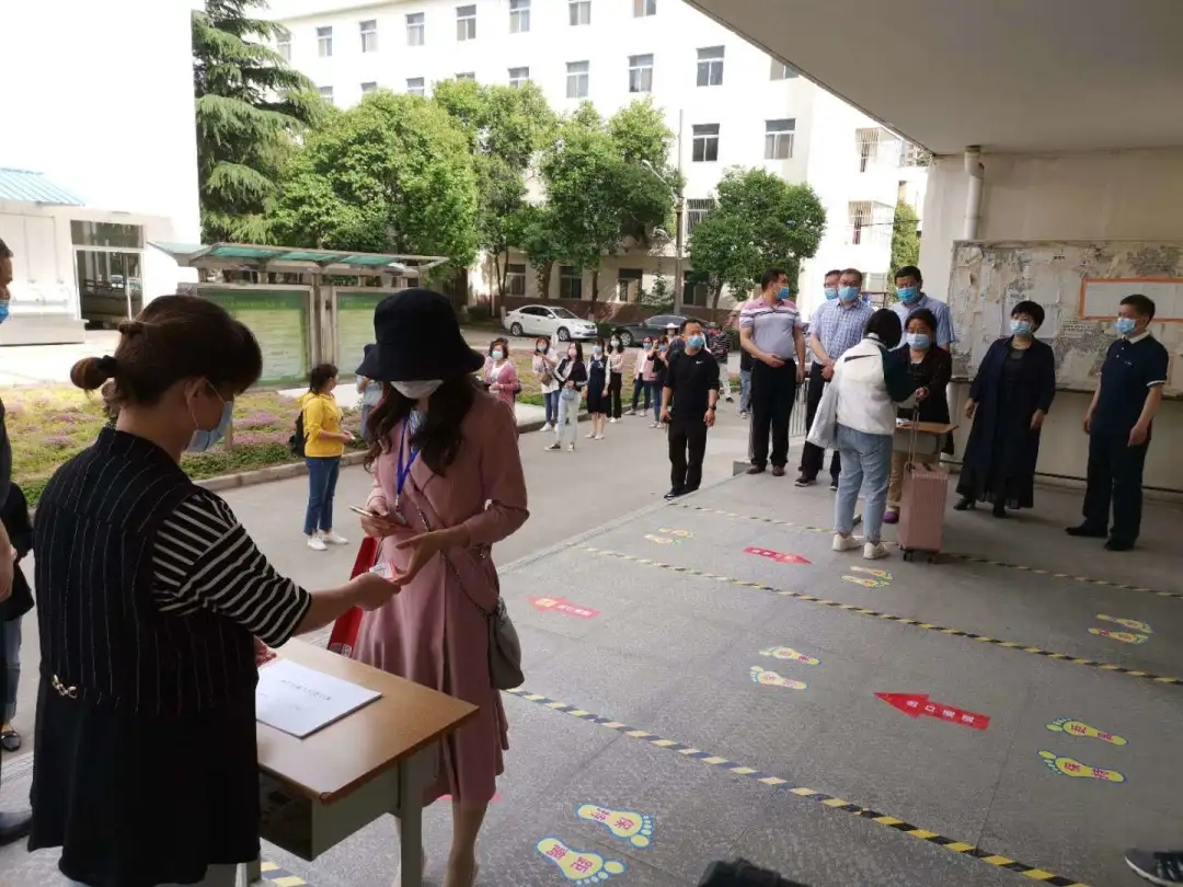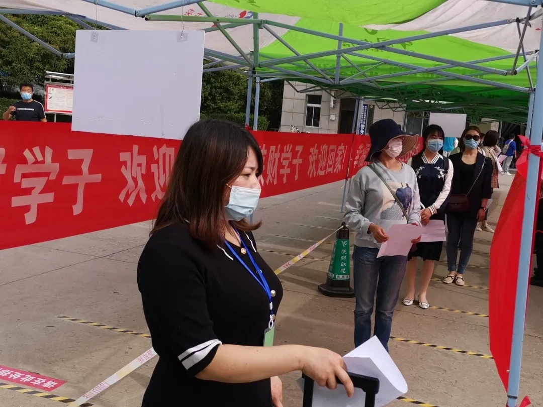 学生抵达学校门口,列队消杀、检测体温,体温合格者进行审核,检查健康码、收健康检测表、发放通行证。体温大于37.3℃的学生将被带至临时留观点进行复检,关闭该学生排队的通道,进行消毒。经检测,若体温依然大于37.3℃,则被带至临时隔离区,由应急车辆送至发热定点医院,并通知二级学院及疫情防控工作领导小组办公室。