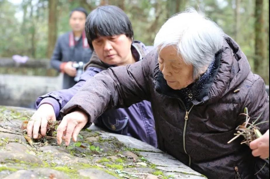 (在江西莲花县玉壶山,龚全珍老人为甘祖昌将军扫墓。)
