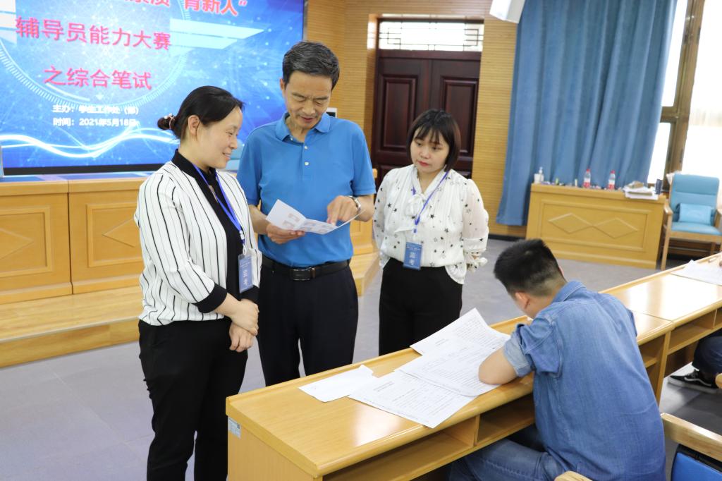 值此建党100周年之际,为贯彻习近平新时代中国特色社会主义思想、落实《普通高等学校辅导员队伍建设规定》文件精神,提高我院辅导员综合素质能力,我院组织举办了“学党史 践初心 强素质 育新人”第六届辅导员素质能力大赛。5月18日下午,在继续教育中心培训厅,大赛进行了第一环节综合笔试,标志着我院第六届辅导员素质能力大赛正式拉开帷幕。学院副院长张秦龙、学生处处长乔晶策、副处长贺适现场督导比赛。