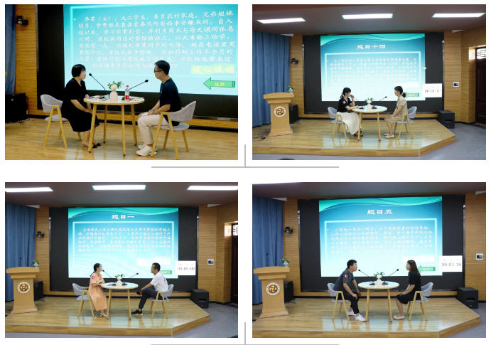谈心谈话决赛中,16名参赛选手与助演搭档围绕当前学生日常事务管理、学生心理问题应对等主题展开情景模拟,双方在赛场上你来我往,认真倾听学生遇到的困惑,精准剖析学生面临问题的本质,提出解决思路和实施办法,处处是智慧交锋,回回有敏捷应对,获得评委与观众们的一致肯定。