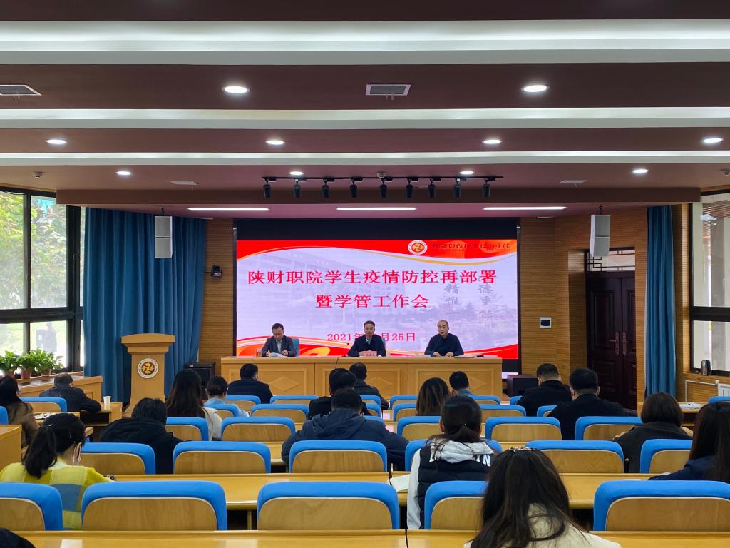 2021年10月25日上午,我校在继续教育中心培训厅召开学生工作暨疫情防控再部署会。学院副院长张秦龙、各二级学院书记、科长、团总支书记、辅导员及学生工作处全体工作人员参会。