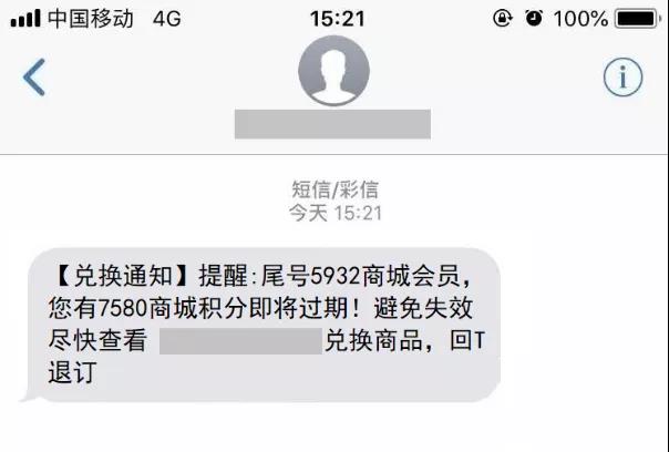 不法分子冒充电商平台发送积分兑换通知,诱骗受害人点击网站链接,而网站中商品均需额外付费且质量无法保证。受害人一旦付款购买,后续无法退货或理赔,甚至付款后根本没有收到商品。