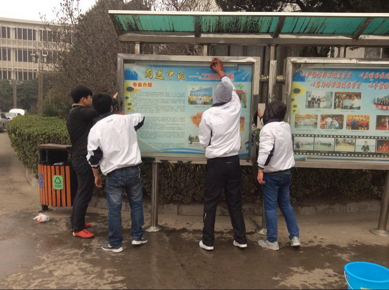 3月5日,宿管会学生干部冒雨开展了校园大扫除活动,同学们对学院大门、保安室、收发室及校内各处宣传栏进行大扫除,辛勤的劳动换来收获的甘甜,学院各处焕然一新。