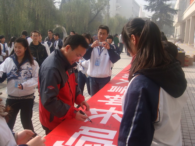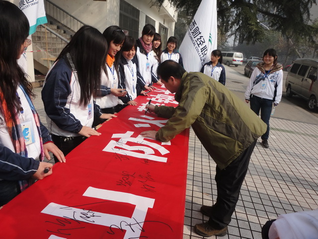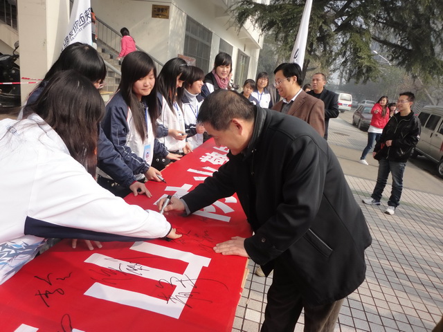 为了提高同学们在公寓内的安全消防知识和安全意识,确保公寓安全无事故,2011年11月22日,由公寓老师指导、学生宿舍自治管理委员会策划并组织的“关注安全,珍爱生命”专题宣传活动在校园顺利举办。活动期间,副院长王文汉老师、财务处副处长李志鹏老师到现场观看并签字。参加活动的领导、老师还有:学生工作部部长雷旭、副部长王铁练、副部长兼团委书记宋波、信息工程系专职副书记兼公寓管理科科长郭宝东、公寓管理老师。此次活动分为三个部分内容进行。