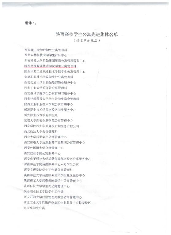我院学生公寓荣获陕西高校“先进集体”称号