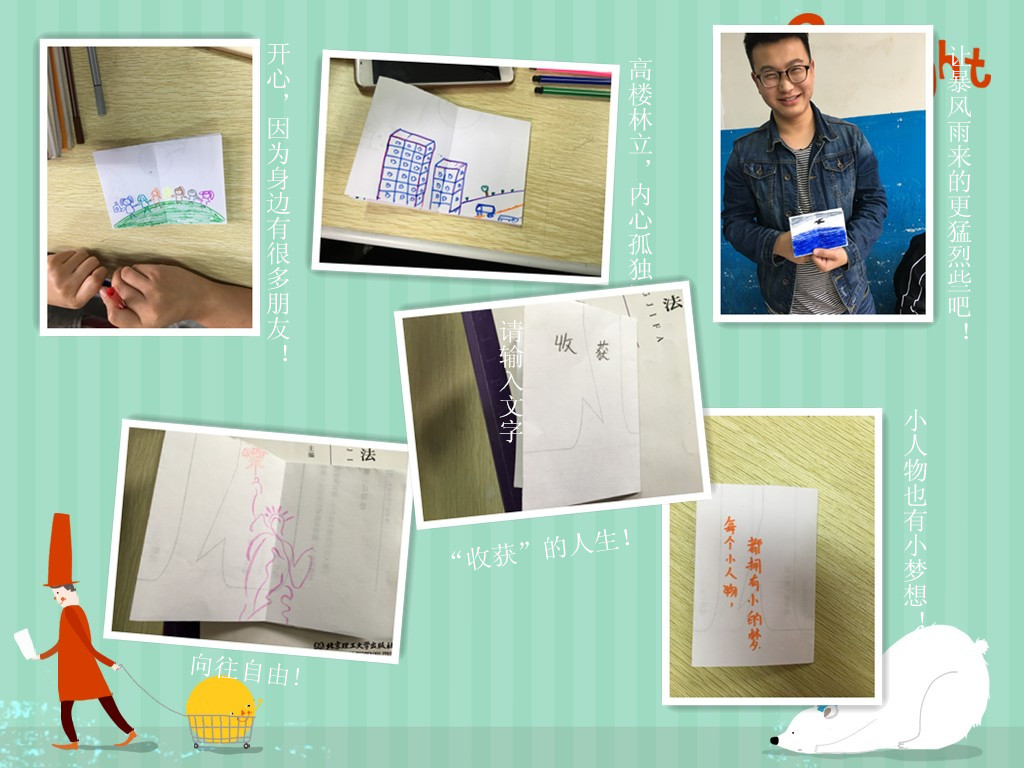 春有百花秋有月,夏有凉风冬有雪,人生其实就是这样,每一个阶段都有它独特的精彩,《团体心理辅导——人生书》活动就是要同学们画出一本属于自己的人生书,并在这本人生书中找到他们的人生之路,为他们扬帆远航指明方向!