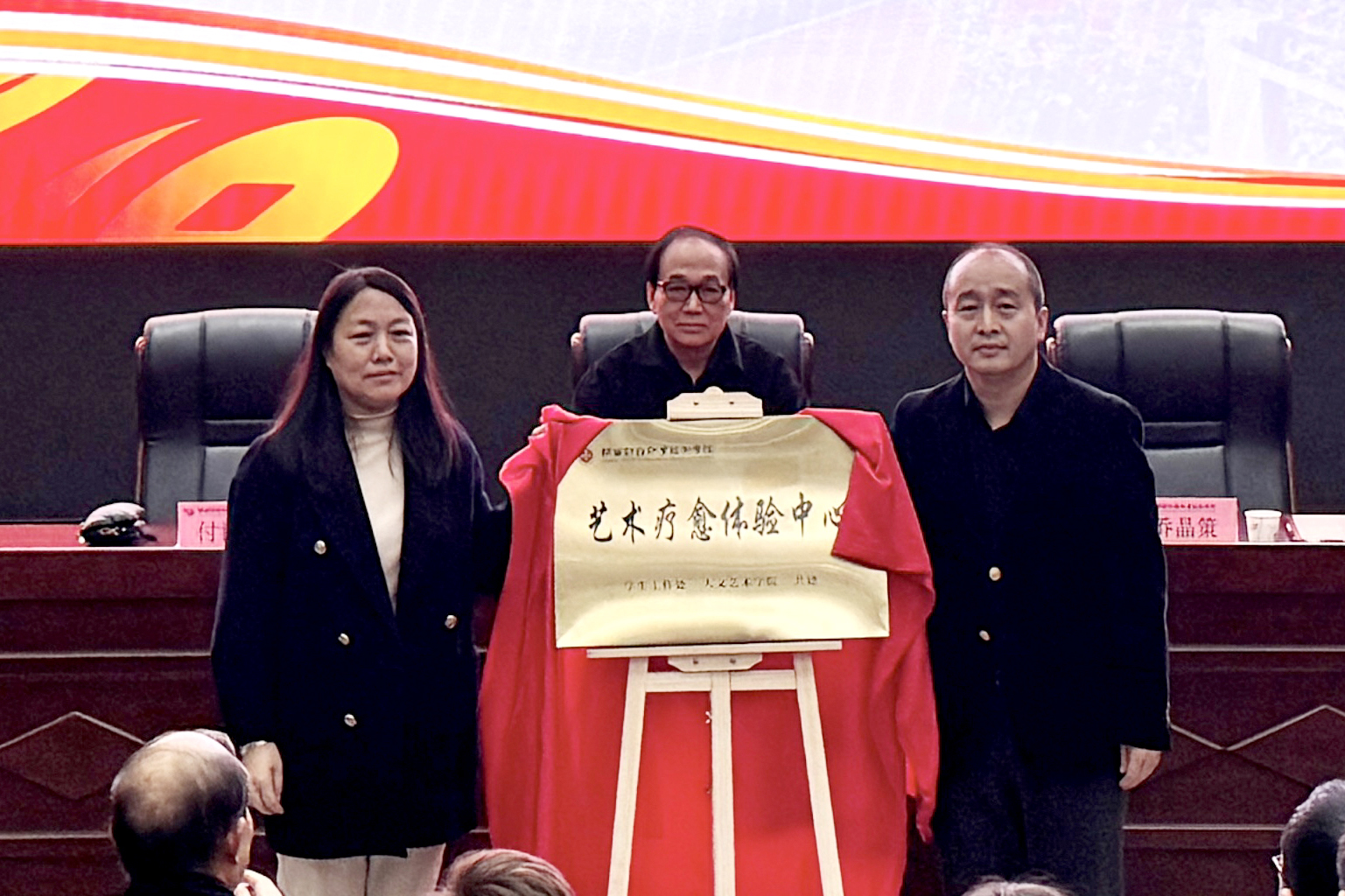 乔晶策做了讲话,他肯定了大学生心理健康教育中心20余年取得的成绩,指明了艺术疗愈心灵的新方向和新蓝图,同时希望未来能从优化组织架构、创新疗愈形式、深化科研应用等方面不断推进。