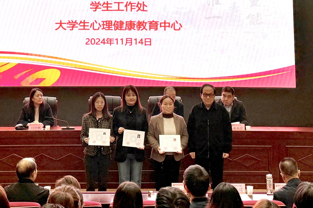 启动仪式上,郑林科为我校授予“陕西省高校心理素质教育研究会艺术疗愈工作室”牌匾,乔晶策与付世秋共同为我校“艺术疗愈体验中心”揭牌,郑林科为杨欢欢、郭姗姗、史贝珂三位老师颁发《注册艺术疗愈师》证书。