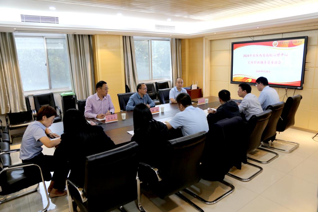 9月29日上午,由陕西省高校心理素质研究会会长郑林科担任组长、西安交通大学心理健康教育中心主任姚斌、西北大学心理健康教育中心副主任张文芳、西安培华学院学工部部长权勇太、陕西交通职业技术学院学工部副部长吴新颖一行五人组成的陕西省教育工委专家组来我校开展省级心理健康教育与咨询中心标准化定级(A类)验收工作。校党委书记高玉峰,党委副书记朱华斌,副校长雷旭、王勇,党委宣传部部长严丽丽,党委组织部部长穆天楠及心理健康教育工作领导小组成员,各学院二级心理辅导站站长、全体专兼职心理教师参加了验收工作会。雷旭主持会议。