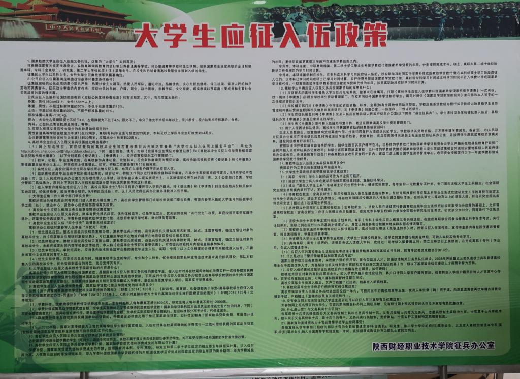 为鼓励优秀大学生参军入伍,扎实推进高校国防教育和征兵工作,4月23日,秦都区人武部政工科科长赵应锋一行三人来我校积极开展国防教育和举办征兵宣传活动。