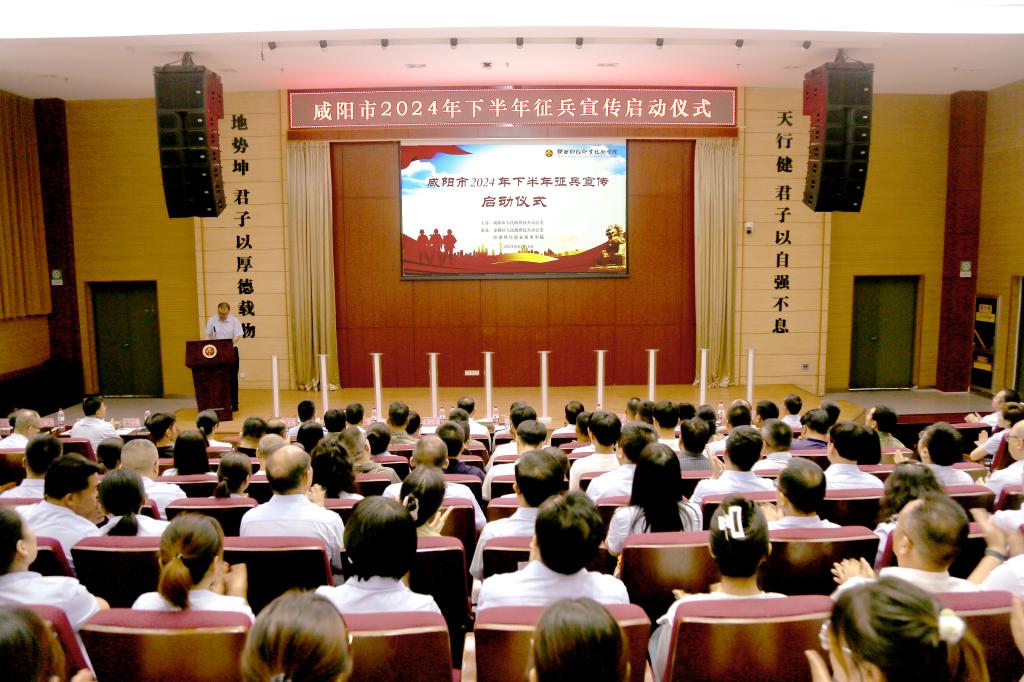 6月14日上午,咸阳市2024年下半年征兵宣传启动仪式在我校学术报告厅举行。咸阳市征兵工作领导小组副组长焦维东,秦都区委书记景雪峰,咸阳市委宣传部副部长李玉冰,咸阳军分区动员处处长欧元军,市委市政府相关部门负责人,我校党委书记高玉峰及学校其他领导班子成员出席启动仪式。咸阳市部分市县区征兵领导小组成员,19所高校、各街办征兵工作负责人及我校400余名师生参加启动仪式。仪式由我校校长程书强主持。