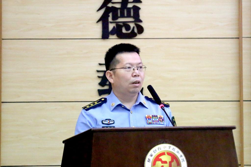 高玉峰在致辞中表示,学校将继续深入学习贯彻习近平强军思想,加强国防教育,培养更多优秀学子,争当投身军营的实践者、征兵政策的宣传者和国防教育的促进者!同时向广大青年学子提出几点希望:一是要心系国防建设,让青春不负时代担当;二是要自觉崇军尚武,让青春助力强军兴军;三是要响应祖国号召,携笔从戎不负青春韶华,在绿色军营绽放最美青春,为实现中国梦强军梦作出应有贡献。