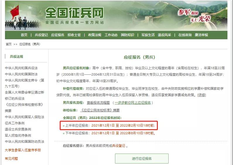 ① 男兵应征报名时间: